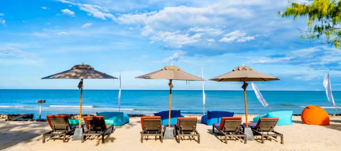 Soft beddings and interior textile accessories that frame the image and invite the breeze — crafted for beachfront stays where comfort meets nature.